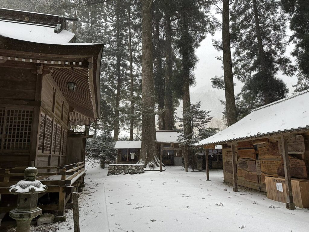参拝いただくには支障ないように除雪を行いましたが、道路はスタッドレスタイヤやタイヤチェーンが必要な状況です。